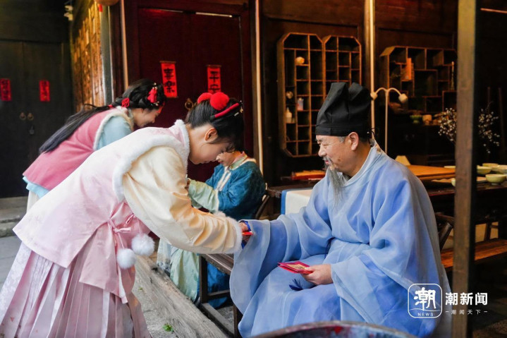 “千门万户曈曈日,总把新桃换旧符。”在蛇年新春佳节来临之际,舟山市亲子同袍会的汉服爱好者们选择了一种别具一格的方式辞旧迎新。他们相约在定海古城“如故国风体验馆”,身着中国传统服饰,沉浸式体验春节文化,感受传统节日的独特魅力。